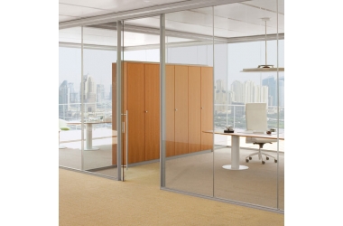 Цельностеклянные перегородки представляют собой систему безрамного остекления из зажимного алюминиевого профиля и закаленного стекла. Офисные стеклянные перегородки изготавливаются из высокопрочного закаленного стекла, толщина которого составляет 10 мм. Они представляют собой конструкцию, состоящую из секций стеклянных полотен. Неподвижные полотна крепятся к потолку и полу.От перегородок с рамным профилем такие конструкции отличаются гораздо большей площадью остекления, более легким и изысканным видом, небольшой толщиной, а также отсутствием видимого профиля и вертикальных каркасов для крепления стекла. При этом такие изделия могут иметь нестандартную конфигурацию, что позволяет воплощать любые дизайнерские замыслы.Из цельного стекла часто изготавливаются офисные перегородки, осуществляется разделение банковских, выставочных и прочих общественных помещений, интерьер которых должен быть воздушным, прозрачным и открытым. Все чаще цельностеклянные перегородки используются в интерьерах частных домов и квартир. Данное решение удобно тем, что позволяет не только привнести в помещение красоту, современность и стиль, но и визуально расширить пространство, наполнить его светом и сделать максимально удобным для владельцев..Цену уточняйте!