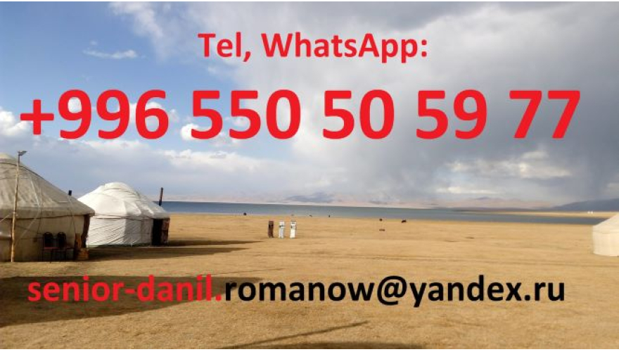 Chers amis! Bienvenue au Kirghizistan, dans ce pays incroyable, hospitalier et beau! Avec grand plaisir je vous ouvrs tous ses coins cachés. Vous montrerai les montagnes plus vertes avec des sommets enneigés, le magnifique Issyk-Koul et je vous amène aux endroits où on prépare les plats kirghizes délicieux. Si vous voyagez individuellement ou en groupe, je vous aiderai de faire un itinéraire pour vous personnellement. Je vous conseillerai à choisir des hôtels et des moyens de transport. Je propose les services d'un guide et d'un chauffeur. Tel: +996 550 50 59 77, WhatsApp: +996 550 50 59 77, senior-danil.romanow@yandex.ru